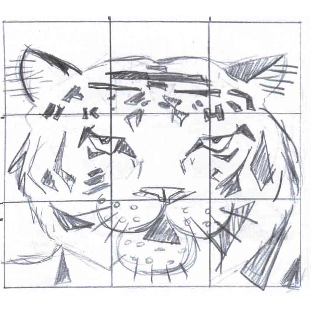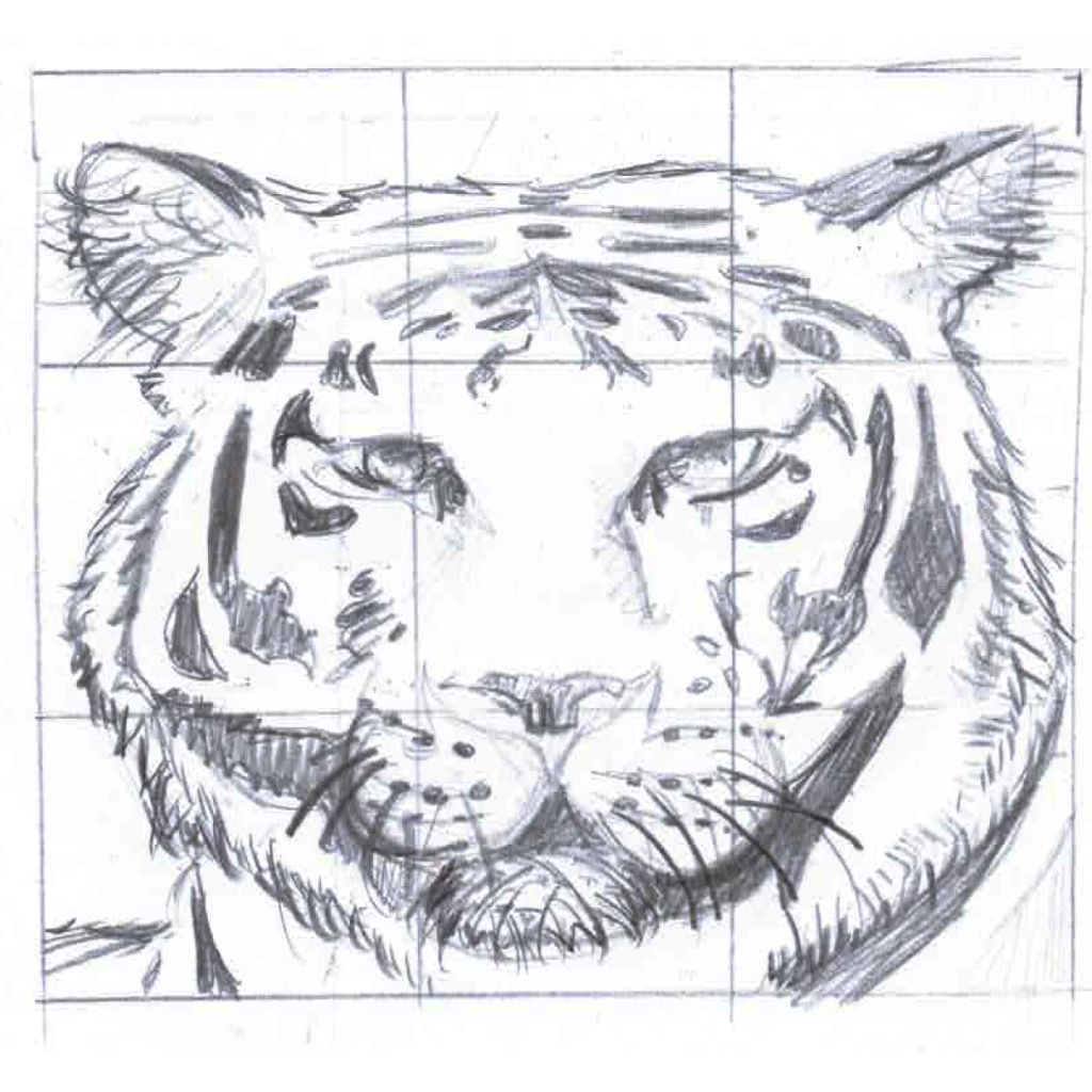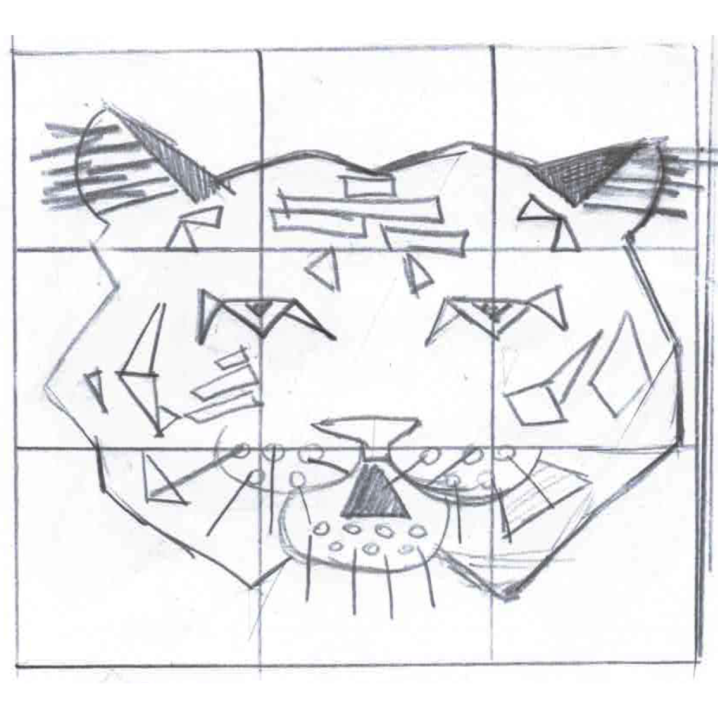Le processus de création a débuté par une série de croquis du tigre, réalisés en plusieurs étapes pour progressivement aboutir à un rough design abouti.