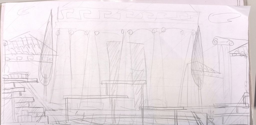 Un obstacle majeur a été de maintenir une cohérence architecturale dans le paysage, en assurant une symétrie et une continuité entre les éléments à droite et à gauche. La gestion de la perspective, tout en respectant l’équilibre des structures et des proportions, a demandé une attention particulière pour garantir une représentation fidèle et harmonieuse de l’architecture grecque.